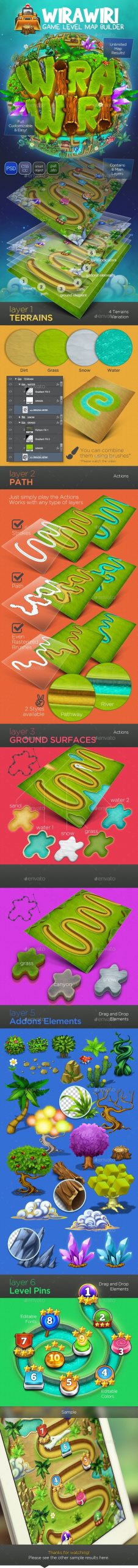 Build your very own game background with a few clicks on photoshop. Very suitable with so many game categories, expecially for games with great amount of levels. Puzzle, adventure, strategy, three-match, or tower defense games.. Display your game levels on a stunning map in easiest way!